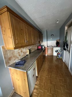Kitchen / Dining: 1.95m x 7.50m -Mixture of laminate flooring and carpet. Units at eye and floor level, tiled backsplash, electric appliances. Off the sitting room area you will find a balcony overlooking the front and Clonmel Greyhound Stadium.