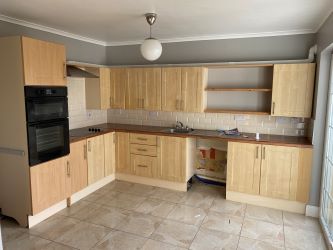 Kitchen/Dining Room: 5.1m x 3.5m- Marble flooring, built in units at eye and floor level, tiled splashback, electric oven and hob with extractor, sliding door to concrete maintenance free converted back yard with boiler house and small shed with door to rear, Door to