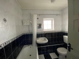 Bathroom: 1.8m x 2.2m- Wall to ceiling tiled, wc, whb, bath with Triton T90 electric shower