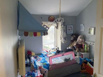 Bedroom 3: 3.8m x 4m- Dual aspect windows. Carpeted floor.