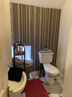 Bathroom: 2.3m x 1.7m - W.c., w.h.b., shower. Tiled floor.