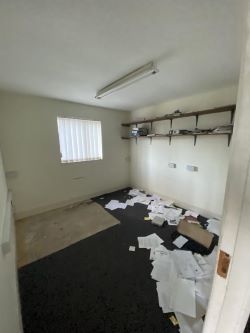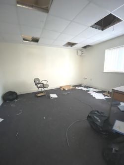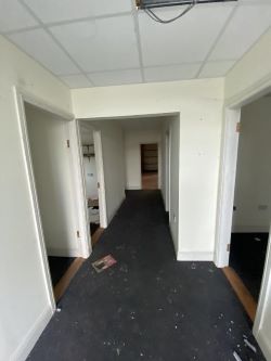 Office 1: 3.7m x 4.4m- Window facing front, carpeted with suspended ceiling
